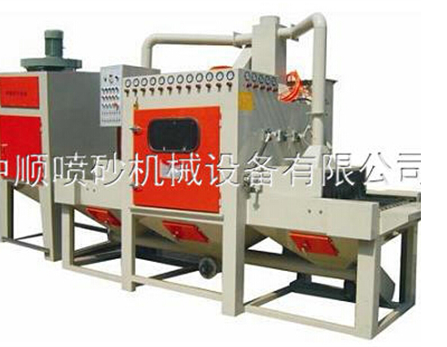 1、本機為平面自動輸送式噴砂專用機、輸送速度可用變 頻數字控制、噴砂速度快、加工品質穩定、簡單。