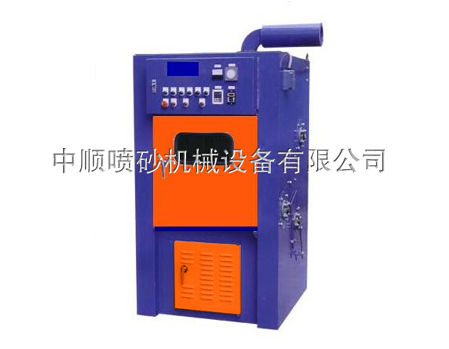 6、本機是由自給式投射裝置,機箱、環帶輸送裝置,集塵機裝置等組合一體機。是一種外觀簡單,不占空間效率又高可降低粉塵污染的噴砂機。